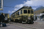 Railcar ABeh 4/4 305 in InterlakenYear of construction: 1965Power: 1000 kW V max: 60 km/h (adhesion), 30 km/h (cogwheel) Manufacturer: SLM, BBC and SIG Photographer: Klaus P. Canavan, 03-23-96 |