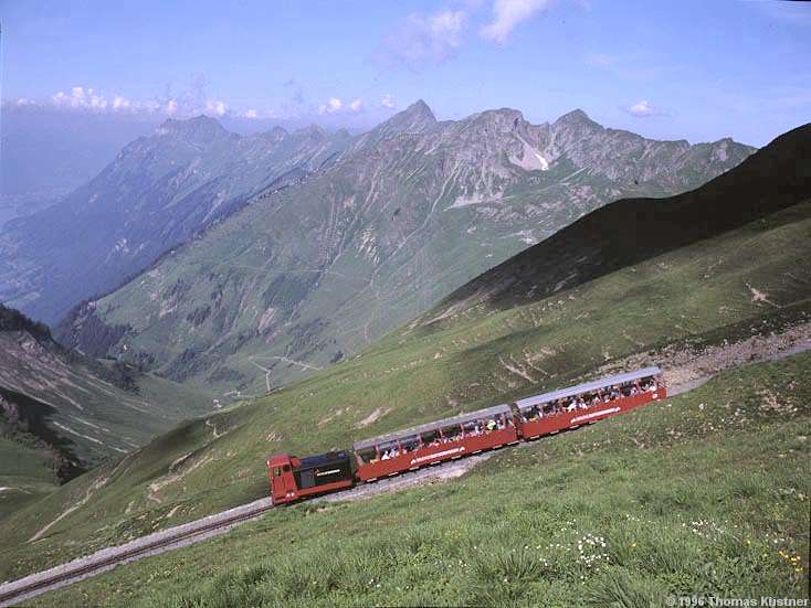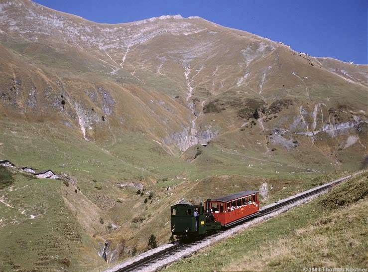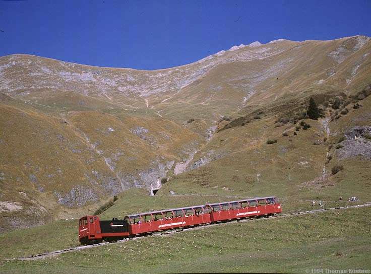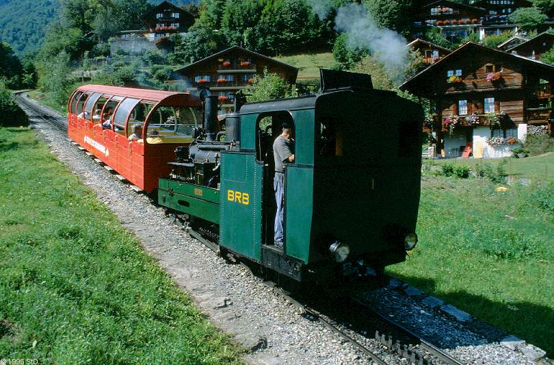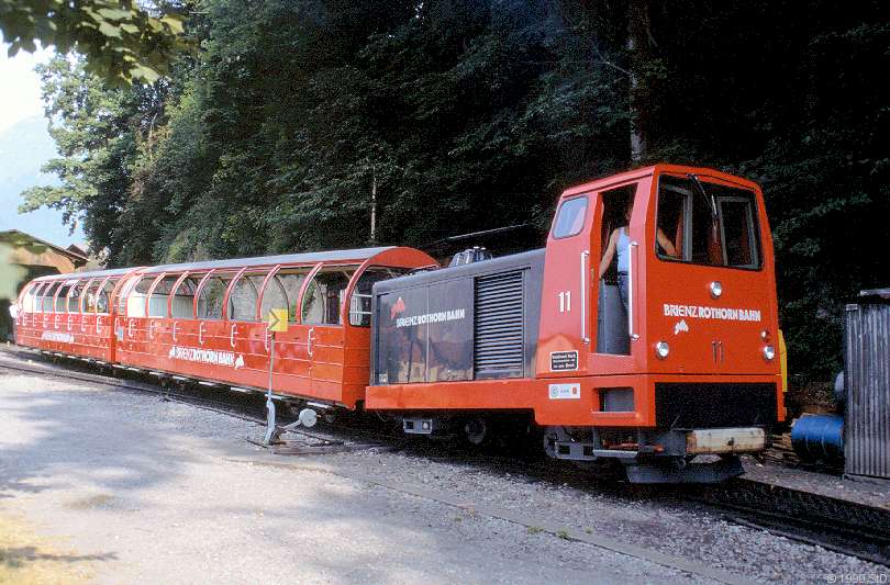 Diesel locomotive Hm 2/2 11 with panoramic coaches in Brienz