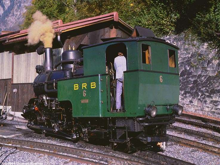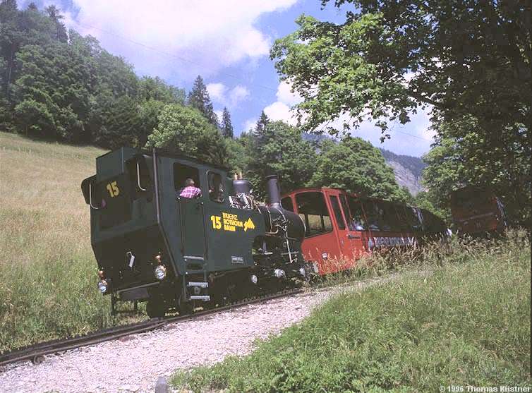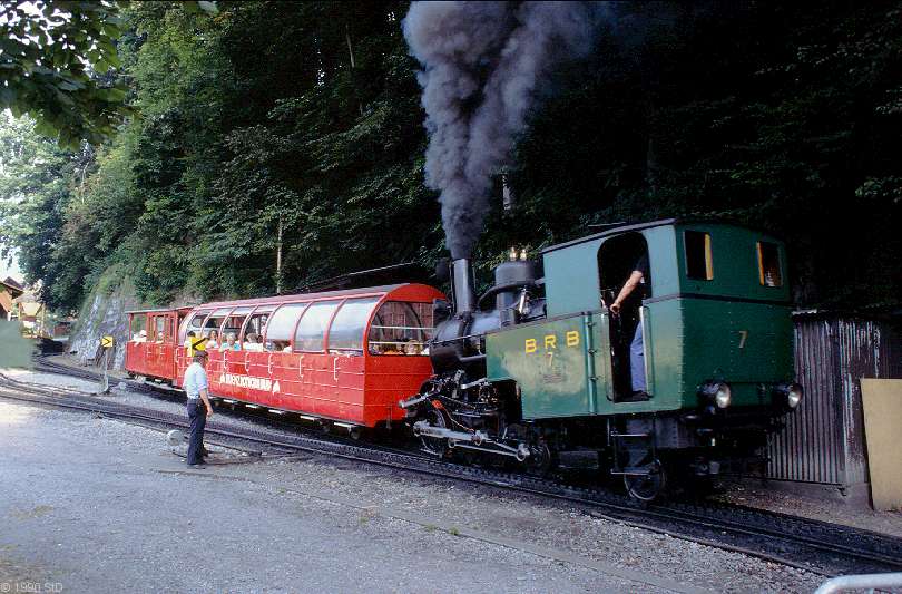 Steam locomotive H 2/3 7 with panoramic coaches in Brienz