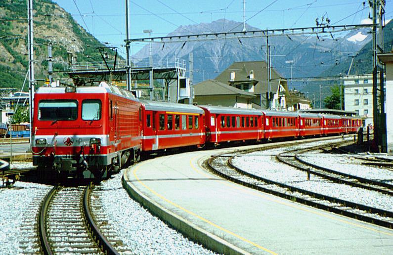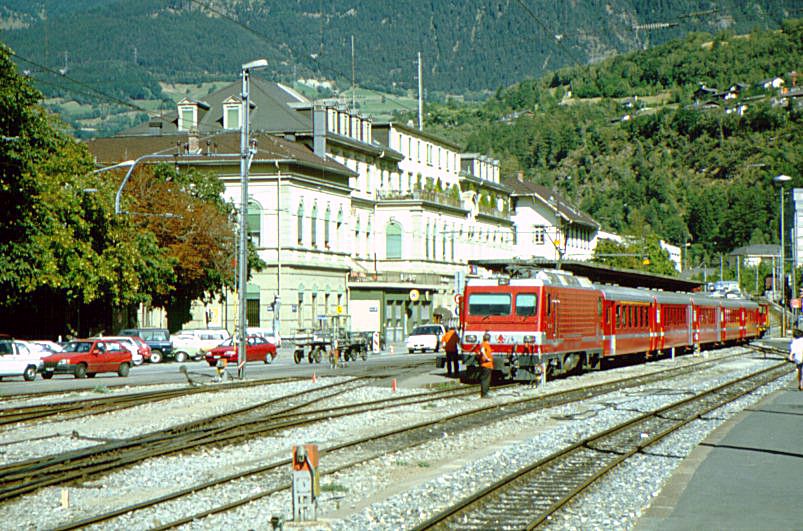 Im Bahnhof Visp verläßt die BVZ mit einer 90-Grad-Kurve das