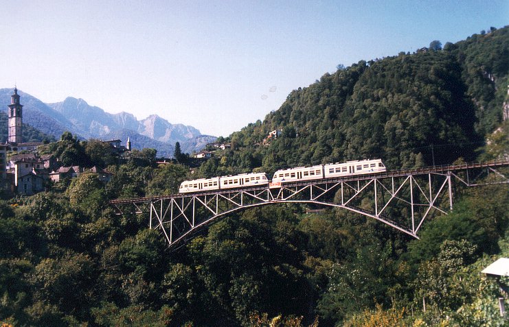 ABe 8/8 auf der Brücke bei IntragnaFotograf: Manfred Luckmann, 29.06.1989 |