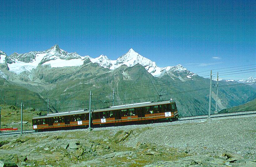 Doppeltriebwagen Bhe 4/8 vor dem WeißhornFotograf: Stefan Dringenberg, 06.09.1998 |