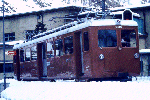Triebwagen Bhe 2/4 3013 in ZermattBaujahr: 1952Leistung: 190 kW V max: 15 km/h Erbauer: SLM und BBC Fotograf: Manfred Luckmann, 20.01.1994 |