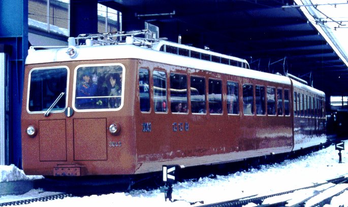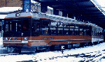 Triebwagen Bhe 4/8 3043 in ZermattBaujahr: 1974Leistung: 380 kW V max: 15 km/h Erbauer: SLM und BBC Fotograf: Manfred Luckmann, 20.01.1994 |
