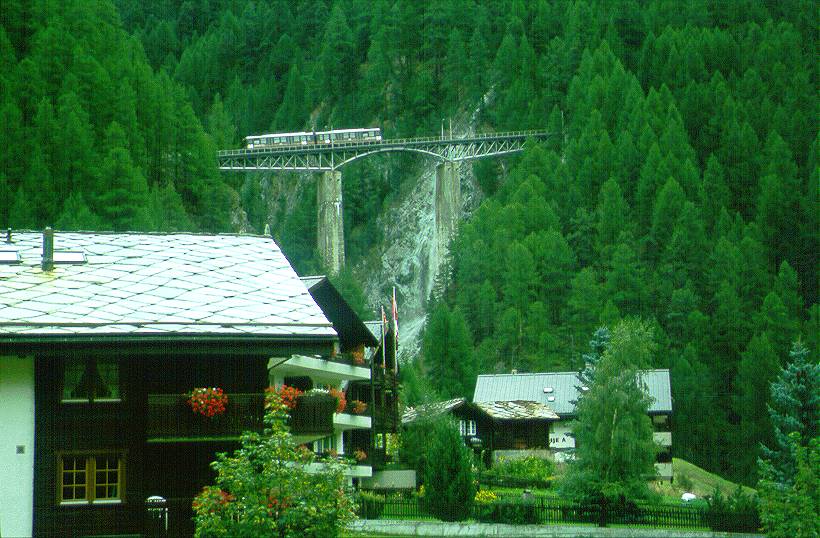 Findelnbachviadukt mit Doppeltriebwagen Bhe 4/8Fotograf: Stefan Dringenberg, 06.09.1998 |